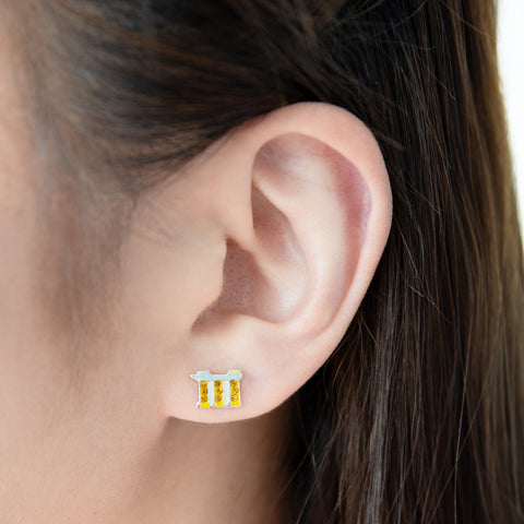 Inspired by Marina Bay Sands, Singapore’s iconic skyline landmark symbolising innovation and modern luxury, these earrings capture its distinctive silhouette in miniature form. Crafted with care and secured with a comfortable screwback closure, they’re a chic tribute to the city